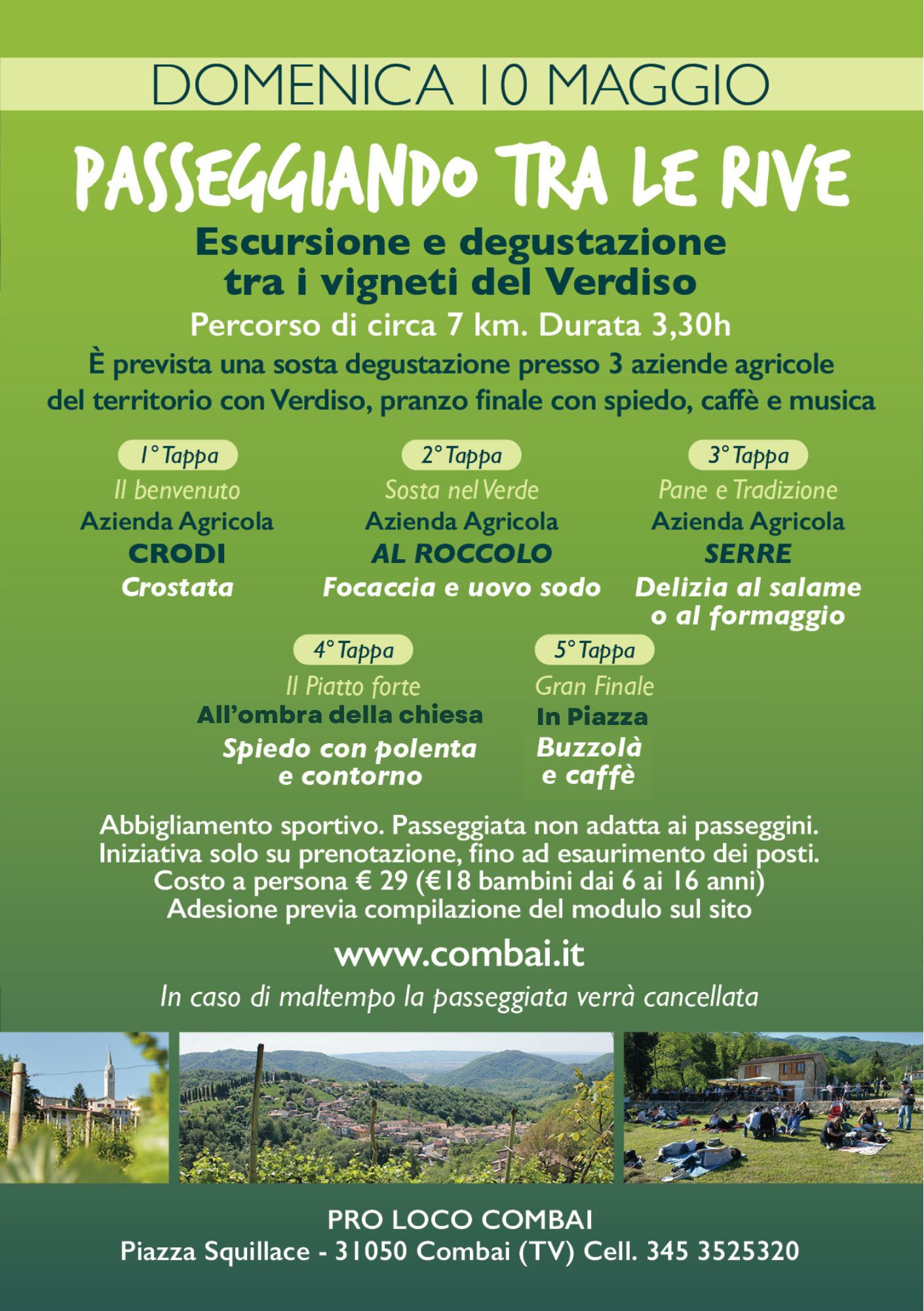 È prevista una sosta degustazione presso 3 aziende agricole del territorio con assaggi di Verdiso, prodotti tipici e l’ultima tappa in piazza.